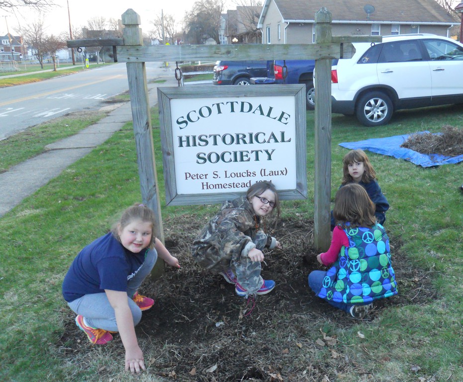 The Scottdale Historical Society hosted 24 Girl Scouts from Troop 22202 in Scottdale on Tuesday, April 8, 2014 to assist with projects around the Historic Loucks Homestead. The girls, from grades kindergarten through seventh, helped with making favors for the Downtown Abbey Tea, held in April, gardening and spring cleaning.